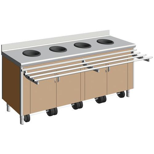Meuble de pré-tri mural p/adulte, avec 4 trous vide-déchet + porte-sac