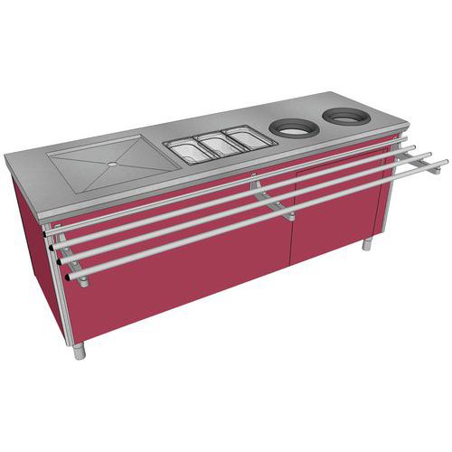 - 3 bacs à couverts GN1/3 polycarbonate profondeur 150 mm (fournis).