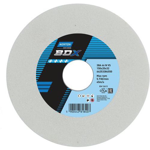 | Intitulé du produit | Meule d'affûtage plate, Meule Ø: 200 mm, Alésage Ø meule: 32 mm, Abrasif: Oxyde d'aluminium, Grain: 60 |