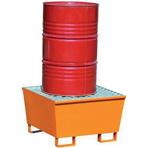 Bac de rétention avec caillebotis amovible en acier permettant une rétention de 1 fût 220 L à 100%.