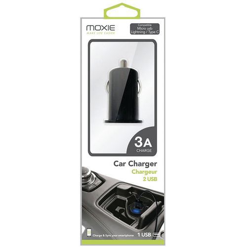 | Intitulé du produit | Mini chargeur allume-cigare universel avec 2 entrées USB, Coloris: Noir |