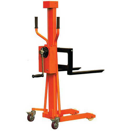 | Intitulé du produit | Mini gerbeur manuel, Force: 150 kg, Poids: 62 kg, Fourche épaisseur: 30 mm, Coloris: Orange/gris |