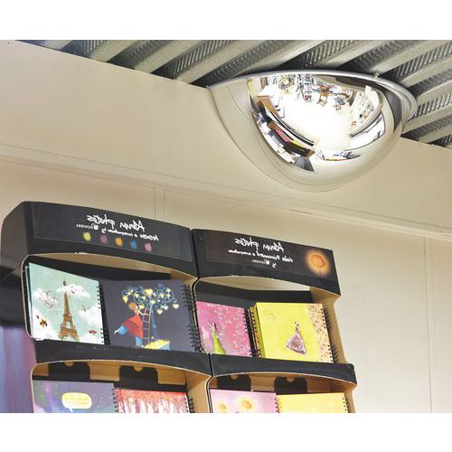 - Miroir 1/4 de sphère pour la fixation murale pour la surveillance et le contrôle de magasin, entrepôt, usine, machine.