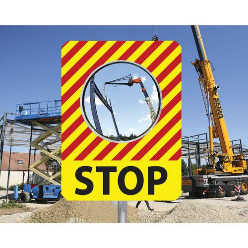 Miroir pour chantier temporaire avec message de sécurité - Kaptorama