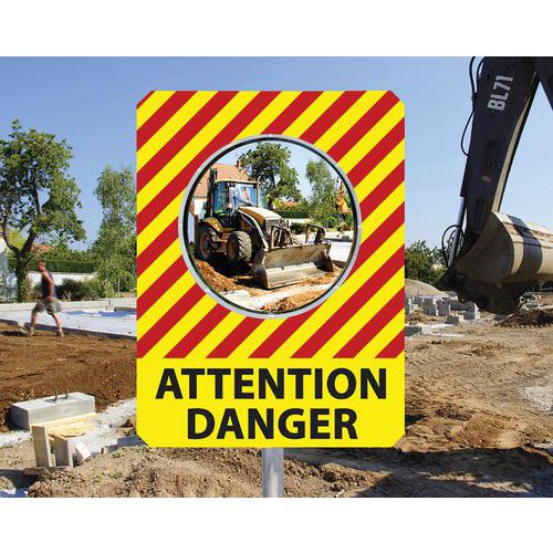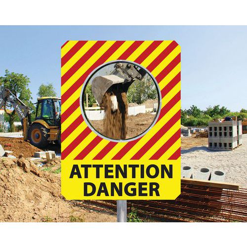Miroir pour chantier temporaire avec message de sécurité - Kaptorama
