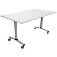 Table de réunion rectangulaire pliante Axe avec plateau stratifié pivotant permettant un gain de place pour le rangement. Plateau stratifié permettant des repas et le nettoyage à l’eau savonneuse Verrouillage automatique du plateau en position travail (horizontal) et position verticale (stockage) . Système de liaison rapide entre les plateaux par vis molette. Equipée de 4 roulettes Ø 75 mm avec frein. Chants ABS épaisseur 2 mm. Piètement métal laqué époxy. Fabriquée en France. Livrée pieds démontés.