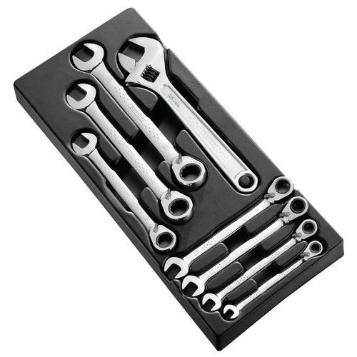 | Intitulé du produit | Module de 7 clés mixtes à cliquet et 1 clé à molette, Réf. Fabricant: E111100, Nb de pièces: 7 |