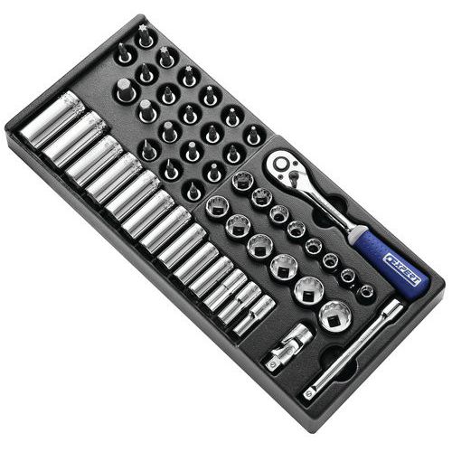 | Intitulé du produit | Module de douilles et accessoires 3/8 métriques, Réf. Fabricant: E031821, Nb de pièces: 50 |