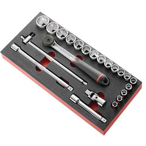 | Intitulé du produit | Module mousse douilles 1/2 12 pans pouces, Réf. Fabricant: MODM.S161-212U, Nb de pièces: 23 |