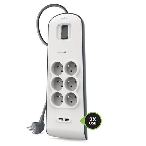 | Intitulé du produit | Multiprise parafoudre 6 prises Belkin, Câble longueur: 2 m, Nb de prises: 6 |
