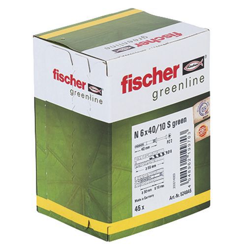 | Intitulé du produit | Cheville à frapper N Green 6 40 10 S, Cheville longueur: 40 mm, Ø: 6 mm, Matériau: Nylon |