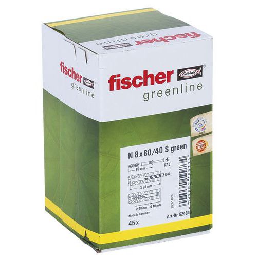 | Intitulé du produit | Cheville à frapper N Green 8 80 40 S, Cheville longueur: 80 mm, Ø: 8 mm, Matériau: Nylon |