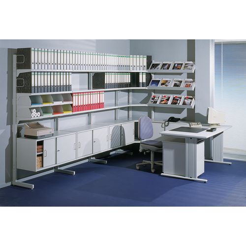 Rayonnage bureau à 1 ou double accès. Matériau et construction stables et robustes. Système de crochets unique d'une grande fiabilité. Finition de qualité avec couche résistant aux griffes. Rayonnage d'exposition de montage et d'extension aisés.