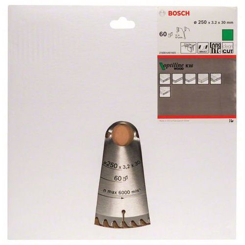 Optiline Wood pour scies circulaires de table, Alésage Ø: 30 mm, Ø: 25 cm, Nb de dents: 60