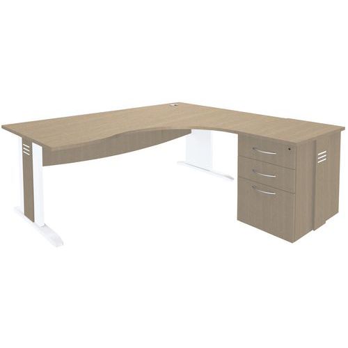 Pack bureau asymétrique Quatuor pied L retour droite + caisson Manutan Expert