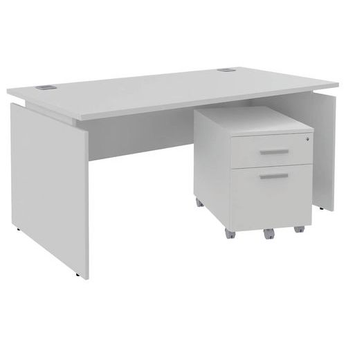 Pack bureau droit Linéo Blanc + caisson mobile Simmob