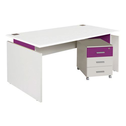 - Caisson avec top et côtés décor blanc et 1er tiroir de couleur et serrure à clé (2 clés livrées).
