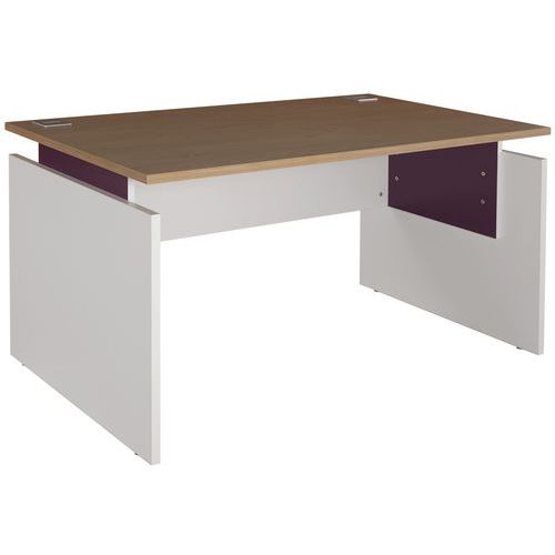Structure panneaux de particules bois revêtu mélaminé. Plateaux épaisseur 25 mm. Réglable en hauteur 3 positions possibles (72,5 75,5 82 cm) à choisir au montage du bureau. voile de fond épaisseur 16 mm décor blanc. Pieds panneaux décor blanc avec entretoises de couleur. Caissons avec top décor chêne clair, côtés décor blanc et 1er tiroir de couleur. 1er tiroir avec serrure à clé (2 clés livrées). L/H/P : 42 x 56 x 53 cm. Mobilier livré prêt à monter avec notice.