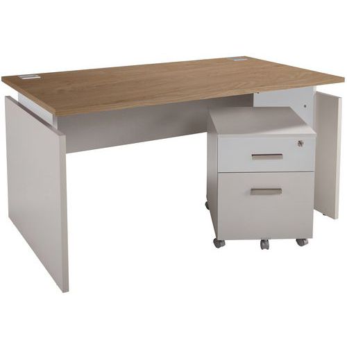 Pack bureau droit Linéo Chêne + caisson mobile Simmob
