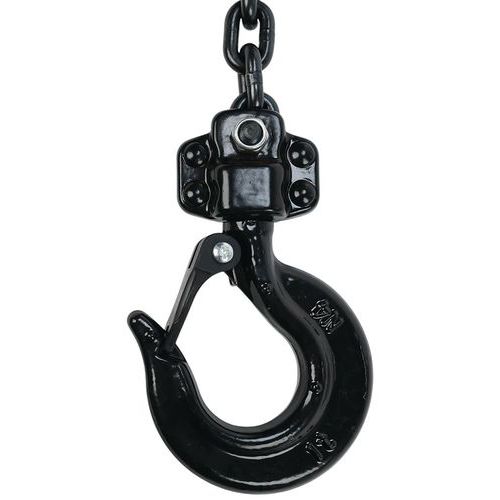 - Crochets pivotants en acier allié estampé peints noirs et équipés de linguets de sécurité forgés.