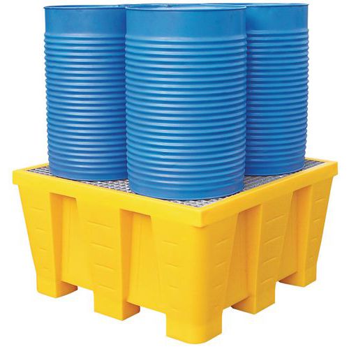 | Intitulé du produit | Palette de rétention 880 L, Capacité de rétention: 880 L, Coloris: Jaune, Capacité (nb de fûts): 4 |