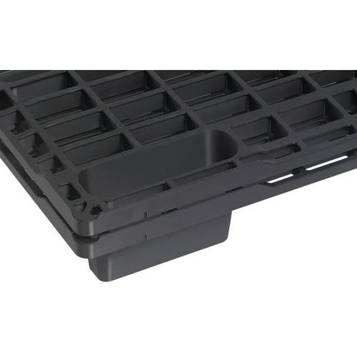 | Intitulé du produit | Palette emboîtable 9 plots, Charge statique maxi: 1500 kg, Nb d'entrées: 4, Largeur: 800 mm |