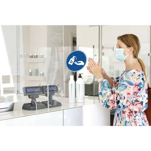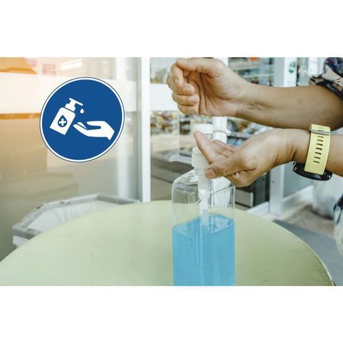 | Intitulé du produit | Panneau adhésif gel main obligatoire 20cm bleu, Adhésif: oui, Rigide: oui, Norme ISO 7010: oui, Matériau: PVC |
