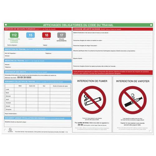 | Intitulé du produit | Panneau affichage obligatoire 57x42cm, Fond matériau: Carton, Approche éco-responsable: oui, Licence FSC: oui |