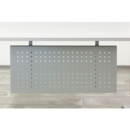 Panneau brise-vue sous bureau argenté. Panneau de visibilité. Tôle perforée émaillée au four. Montage : À monter Classement au feu : M0