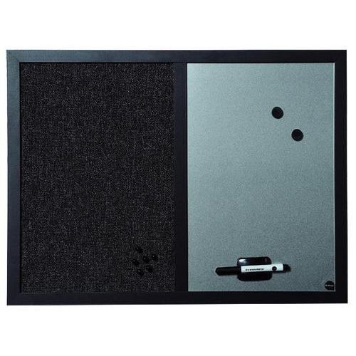 Deux nouvelles combinaisons stylisées de panneau d’affichage en feutre + tableau blanc pour tous les environnements. Élégant à accrocher au mur, il rafraîchit l’environnement intérieur. Le matériel est de conception récente et vise à fournir une présentation de qualité à un coût raisonnable. Idéal pour une utilisation fréquente au quotidien. Kit de suspension, 6 épingles de cartes, 2 aimants et un stylo à encre sèche inclus. Épaisseur du cadre : 22 mm. Le tableau d’affichage est disponible en deux versions, toutes deux avec un cadre noir : 1. Feutre gris foncé combiné à une surface effaçable à sec argentée, comme un tableau blanc, mais dans une couleur différente. Utilisez des marqueurs effaçables à sec ou des marqueurs WB ordinaires. 2. Feutre gris clair combiné à une surface effaçable à sec argentée, comme un tableau blanc, mais dans une couleur différente. Utilisez des marqueurs effaçables à sec ou des marqueurs WB ordinaires.