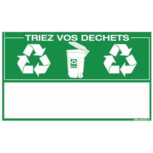 | Intitulé du produit | Panneau de signalisation développement durable - Triez vos déchets - Adhésif |