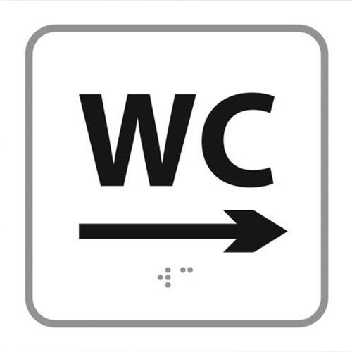 | Intitulé du produit | Panneau en relief et en braille WC flèche gauche, Adhésif: oui, Matériau: PVC, Type de panneau: Indication |