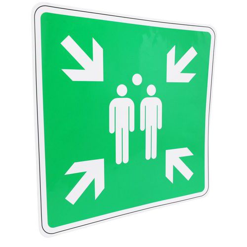 Mettez en place un point de rassemblement et organisez dès maintenant l'évacuation de votre personnel grâce à ce panneau d'évacuation adhésif.