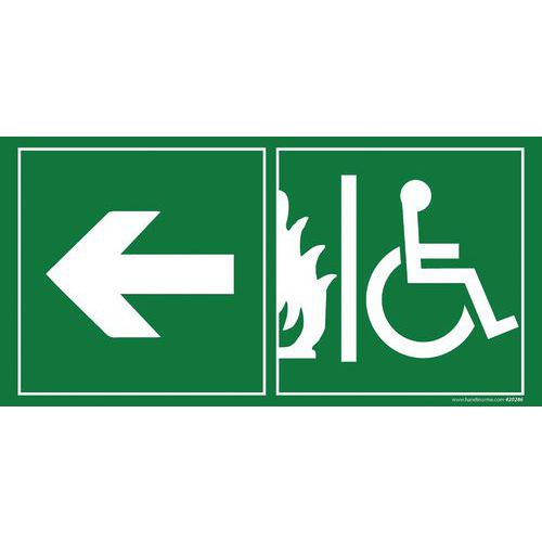 Panneau évacuation pour handicapé Sortie de secours gauche.