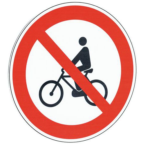 | Intitulé du produit | Panneau Circulation interdite des velos aluminium, Adhésif: non, Rigide: oui, Norme ISO 7010: non |