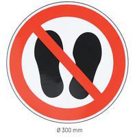 Panneau Ne pas marcher/stationner ici adhésif, Adhésif: oui, Rigide: non, Norme ISO 7010: oui