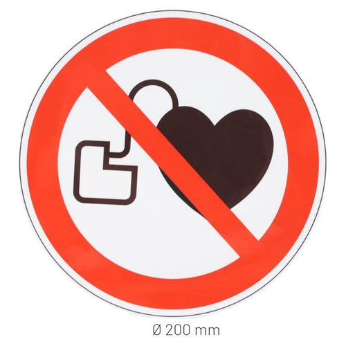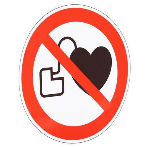 - Panneau d'interdiction avec pictogramme pour signaler un danger envers ces personnes équipées d'un appareil cardiaque.