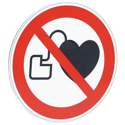 - Avec ce panneau avec pictogramme compréhensible par tous, signalez un danger envers ces personnes équipées d'un appareil cardiaque.