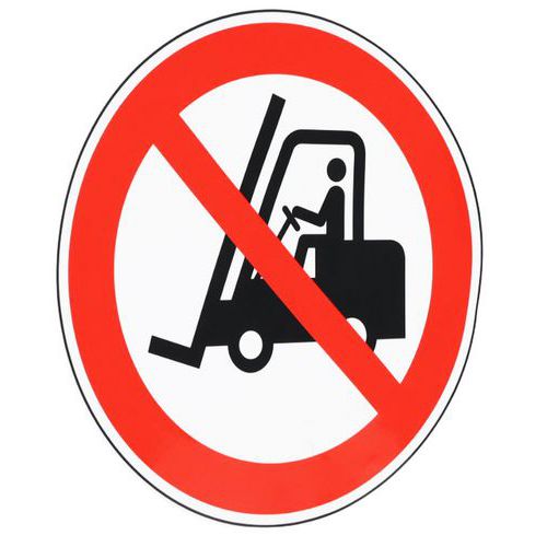 Organisez les zones piétonnes et d'engins de manutention à l'aide de ce panneau d'interdiction de circulation avec pictogramme des chariots élévateurs à fourches.
