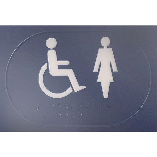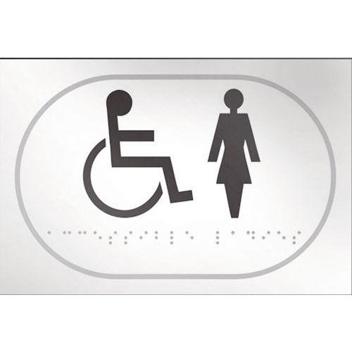 | Intitulé du produit | Panneau picto handicapé + femme en relief et en braille, Adhésif: oui, Matériau: PVC |