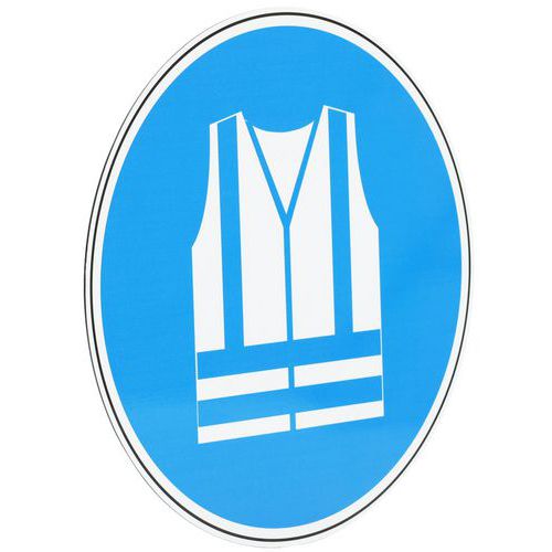 Grâce à ce panneau avec pictogramme, vos employés et visiteurs seront en sécurité car ils seront avertis d'une obligation à respecter : l'obligation du port de gilet à haute visibilité.