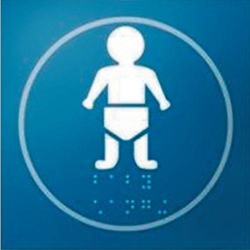 Ce panneau BEBE NURSERIE est en relief pour aider les malvoyants ne sachant pas lire le braille.