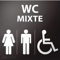 Panneau relief et braille WC MIXTE + picto Handicapé.
