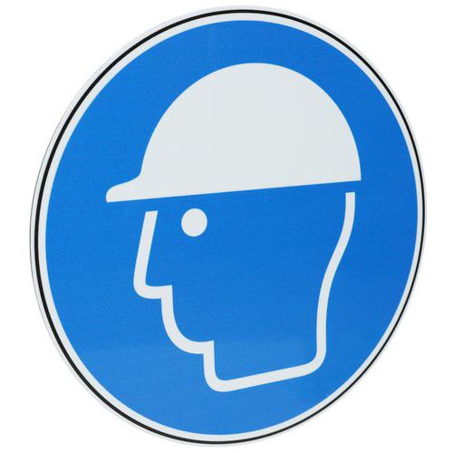 | Intitulé du produit | Panneau Casque de protection obligatoire, Adhésif: non, Rigide: oui, Norme ISO 7010: oui, Panneau forme: Rond |