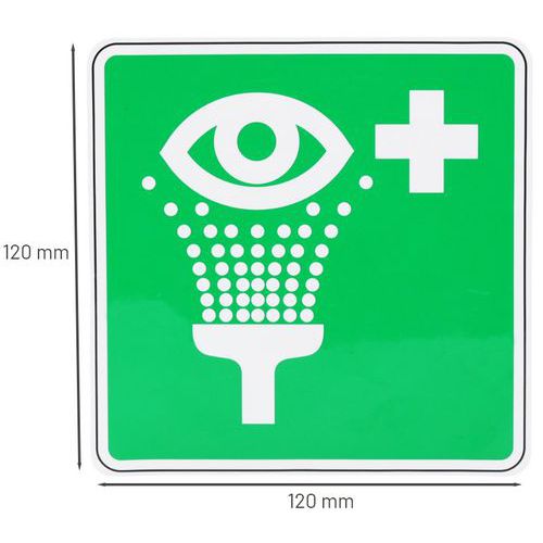 Panneau équipement de rinçage des yeux adhésif, Adhésif: oui, Rigide: non, Panneau forme: Carré