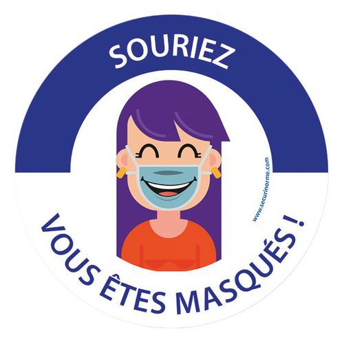 | Intitulé du produit | Panneau Souriez, vous êtes masqués, Adhésif: oui, Rigide: non, Matériau: Vinyle, Panneau forme: Rond |