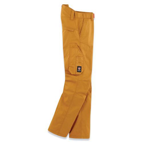Pantalon type chino, léger, poches italiennes, poche mètre côté droit avec insert stylo, poche invisible côté gauche, poches dos gauche plaquée et poche dos droit zippée. Ceinture gros grain Orange Parade intégrée à boucle plastique YKK avec passant devant tricolor. Pinces devant et genoux permettant liberté de mouvements et aisance. Bas retroussable avec finition tricolore. Ceinture dos réhaussée et impression logo Parade Orange au milieu dos. Braguette fermeture à glissière métal YKK.