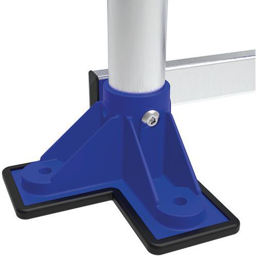Passerelle aluminium fixe double entrée, petite hauteur d'accès. Sûre : 1 garde-corps intégré pour sécurité anti-chute augmentée. Stable avec large plate-forme et marches profondes antidérapantes. Passerelle fixable au sol si besoin avec larges pieds à double fixation. Structure très résistante, adaptée aux usages intensifs, sols plats requis. Confortable, évolutive, polyvalente, adaptable à tous les types de besoin. Pied double fixation, vis Ø 8 mm (non fournies). Garde-corps avec plinthe intégrée (h 100 mm).