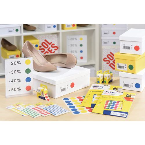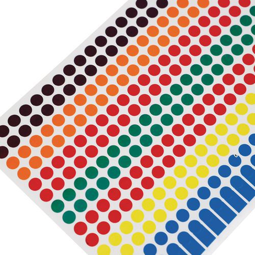 Compatibles toutes imprimantes laser et encre. Pour signaler, identifier, classer, codifier, repérer en seul coup d'oil. Plusieurs couleurs et plusieurs diamètres. Adhésif permanent.