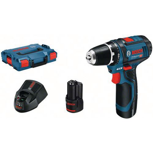 | Intitulé du produit | Perceuse-visseuse GSR 12V-15 avec 2 batteries 2,0 Ah Bosch, Batterie capacité: 2 Ah, Batterie tension: 12 V |